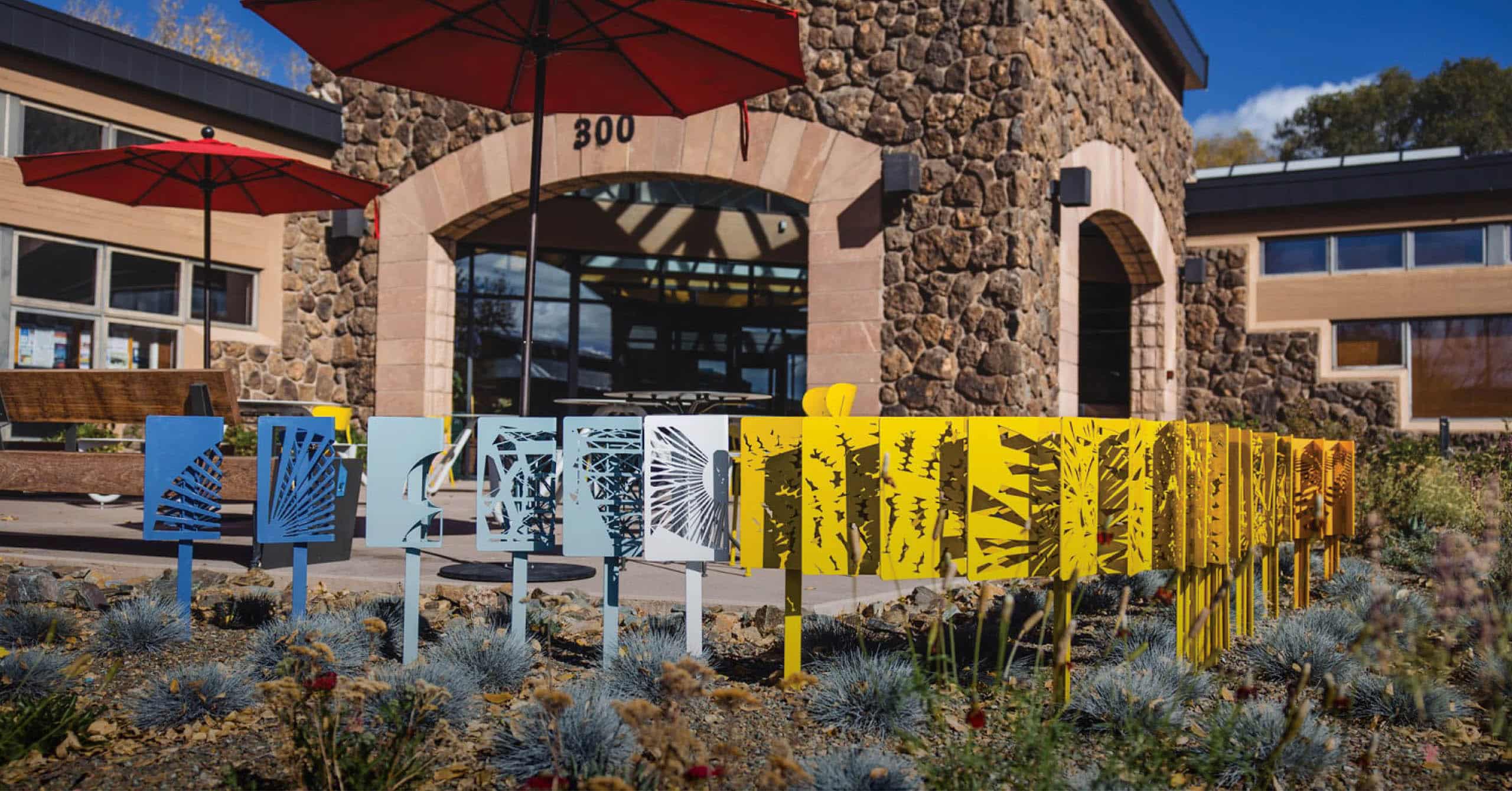 Crafted with the collective vision of the City of Flagstaff, the Beautification, Arts & Sciences program, and artist Maria Salenger of Jones Studio, this project embodies a collaborative spirit. The installation, composed of 45 sculptural lanterns reminiscent of pages turning in the wind, guides visitors along accessible pathways to the library’s new “front porch” and main entrance.